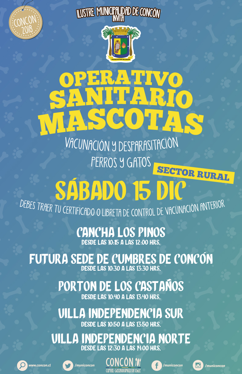Esta iniciativa de la Ilustre Municipalidad de Concón, nace con el objetivo de fomentar la tenencia responsable de mascotas. Estos continuaran en los meses de verano y las nuevas fechas se informarán a partir de la primera semana de enero.