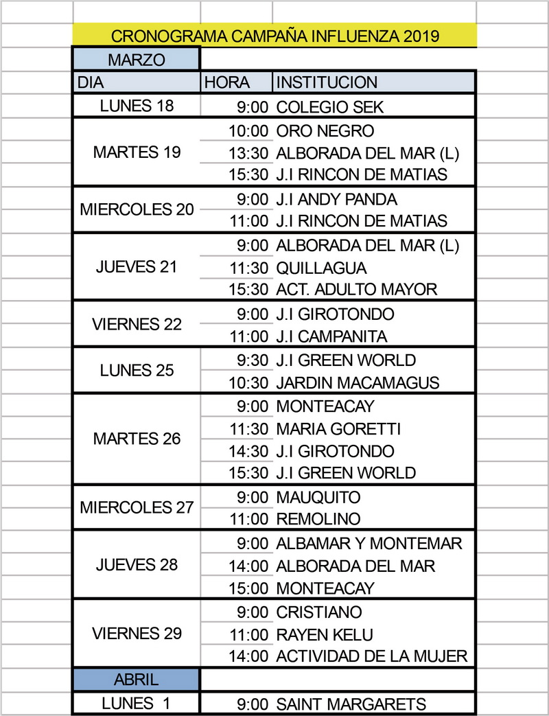 Continúa la Campaña de Vacunación contra la Influenza en la comuna y para ello el Departamento de Salud Municipal entregó el calendario oficial de inmunización en los establecimientos de educación.