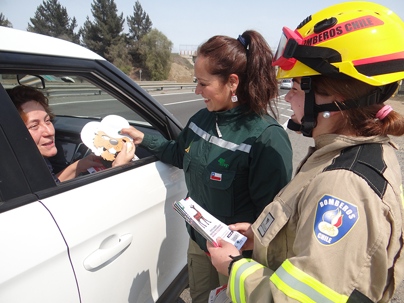 Funcionarios de Conaf, Bomberos y Carabineros entregaron recomendaciones a los conductores, para evitar siniestros en áreas boscosas y aledañas a carreteras. También pidieron a la comunidad denunciar negligencias en el uso del fuego.